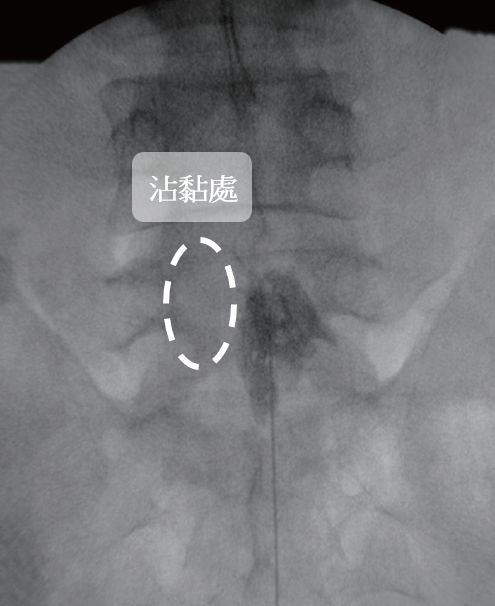 許安智說明,「硬脊膜外神經解沾黏術」利用X光機進行定位操作,會從靠近尾椎的薦椎裂孔先施以局部麻醉藥物並導入導管,再注入顯影劑分辨出沾黏處,接著針對沾黏處利用輕微剝離的方法將神經分離出來,減輕神經因沾黏造成的壓迫,最後注射消炎的藥物減緩疼痛,手術時間約一小時到兩小時(視部位多寡),病人全程保持清醒,過程中若感到不適可以立即向醫師反應,術後當日即可下床行走不用住院,不但傷口小於1公分,術後照顧也相對簡單。